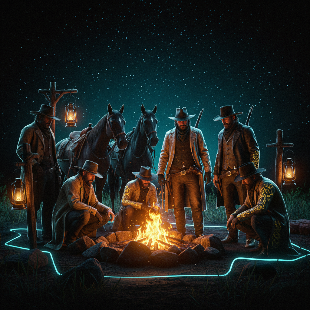 From the dust of Armadillo to the marshes of Lemoyne — saloons, sheriff's offices, ranches, and outlaw camps fill our custom-built frontier. Every NPC has a name. Every story matters.